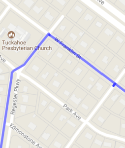 4s/5s/6s – Continue heading west on West Franklin to Register Parkway and take a left taking it to Patterson. All groups should be at Patterson/Three Chopt.