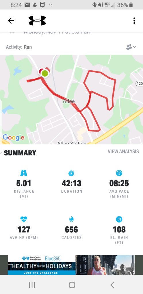 4 men came out for the weekly morning run. No Idea and Mud Face split off and did their thing around the school. Marco Polo and Trout went out for a 4 mile run. Went over the bridge into Rutland, stopped by Bojangles for a chicken biscuit, then ran through the neighborhoods, look at the picture below for more details of route…coming back over the bridge Marco Polo told Trout we only had .25 miles to get 5 miles, I didnt questions his watch but I really think we had more in the range of .75 but whose counting. Finishing up with 5 miles and will not be able to walk right the rest of the week….