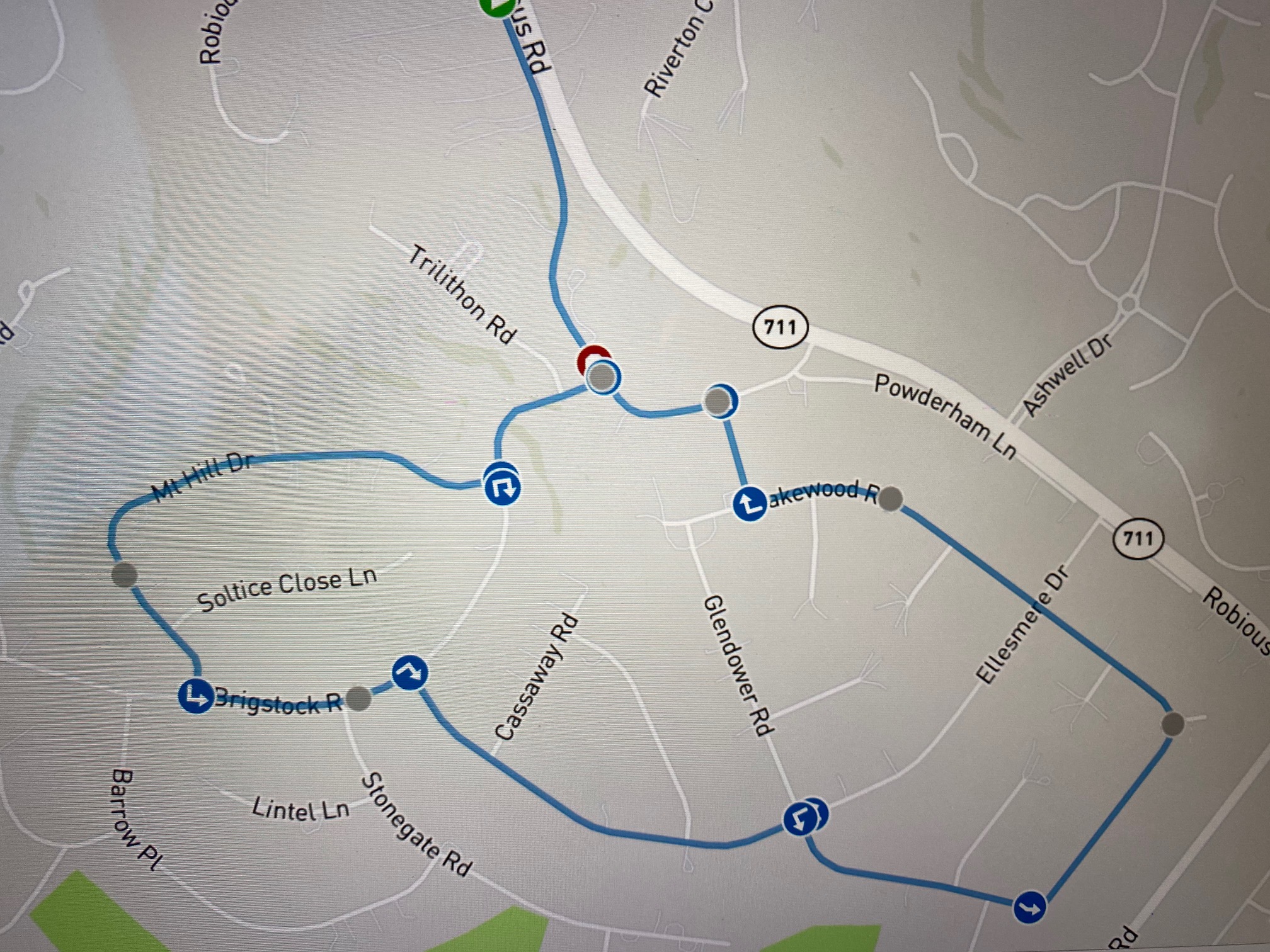 4s: up Twin Team hill, thank the lady walking her dog for the supportive comments, right on Brigstock and right on Mt. Hill around to Brigstock again. Left on Brigstock and take Ellesmere to Glendower – 3/4 of the Powderham Loop and back to Twin Team (downhhill this time!!) and BTTF.