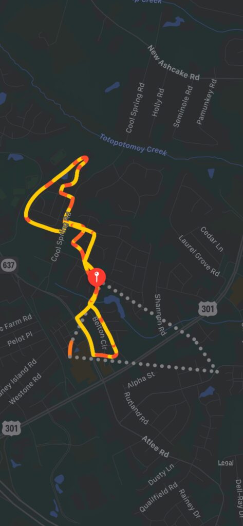 We had a small group 4 runners and one on a bike(gear) show up for a Labor Day morning run. Trout brought his 2.0 Nutmeg and her bike so she could ride along with us on our run this morning. We ran/biked a 4.5 mile route this morning. It was a cool 57 degree morning and we really enjoyed the cool and calm experience where most people were sleeping in on this holiday morning. There was minimal traffic and a nice sunrise to clear blue skies.