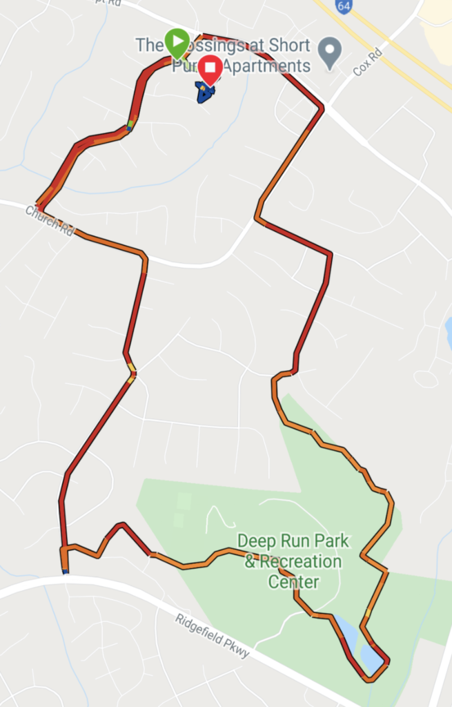 Another OTB run 0 By Gomer Pyle on September 25, 2020 Richmond, VA Expansion Off The Books When: 09/23/20 QIC: Gomer Pyle The PAX: Gypsy, Gomer Pyle Nice run on a cool morning. Gypsy and I set out to explore more wed morning run options. Route below.