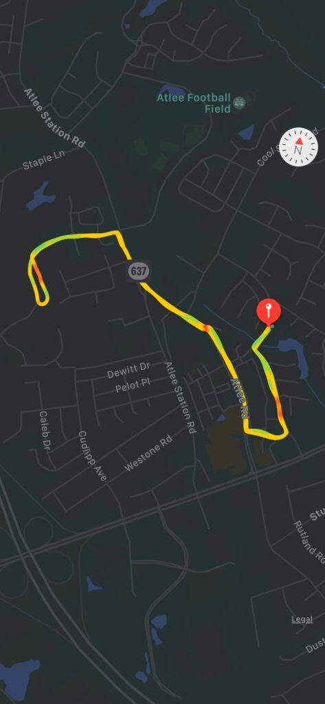 We call this a Giles loop and we start from Ruxton clubhouse with a reverse Bojangle’s loop run over tracks to Giles and loop around and return to Bojangle’s loop to Ruxton Clubhouse to wrap up the 4.1 mile run.