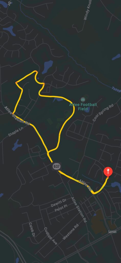 This finished at about 4.2 Miles so a Bojangles loop would add another 1/2 mile.