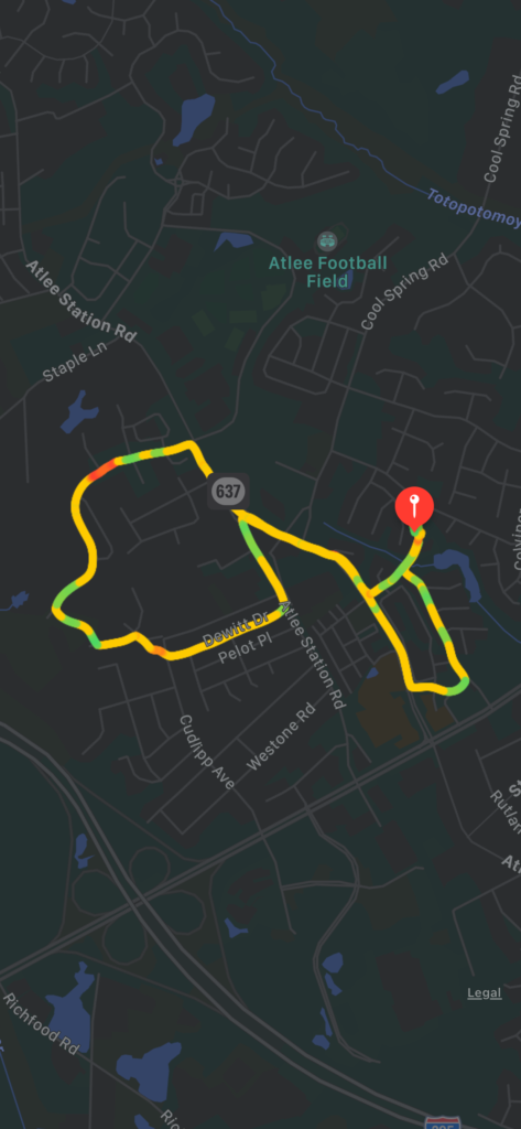 YHC and his 2.0 were ready to roll this AM and met Bulkhead at the Ruxton Clubhouse. As it was 70 and sunny this morning, we decided to take the reverse BoJangles and Giles loop via DeWitt drive, see map below.