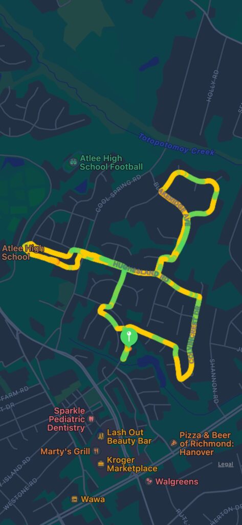 We gather up to get ready for a 4 mile route and go through a few Rutland area subdivisions. With the cooler weather we ran a faster pace. See route below: