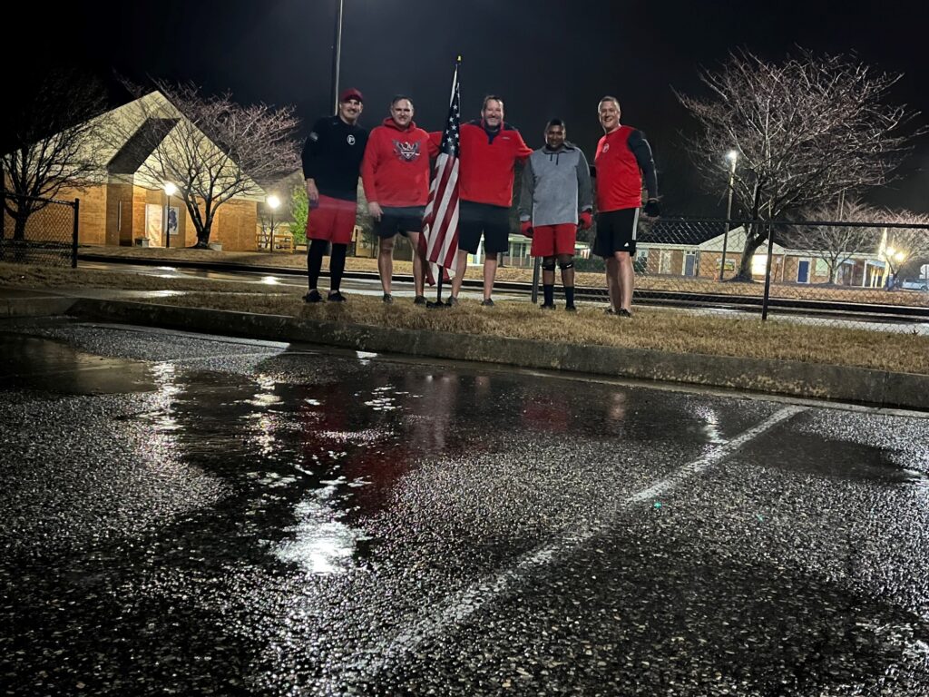 Mosey back to flag, Corned Beef set up camera for photo shoot, take picture and circle up YHC took us out in prayer. The COP and the THANG are what Cardinal had planned for his workout VQ. We spent the morning thinking about a person that we had not met personally; however, this hurts still as he was a brother in F3. Please check the F3 nation channel for the Gofundme information if you want to donate to his family, there is also more about Taylor Phelps and his family.