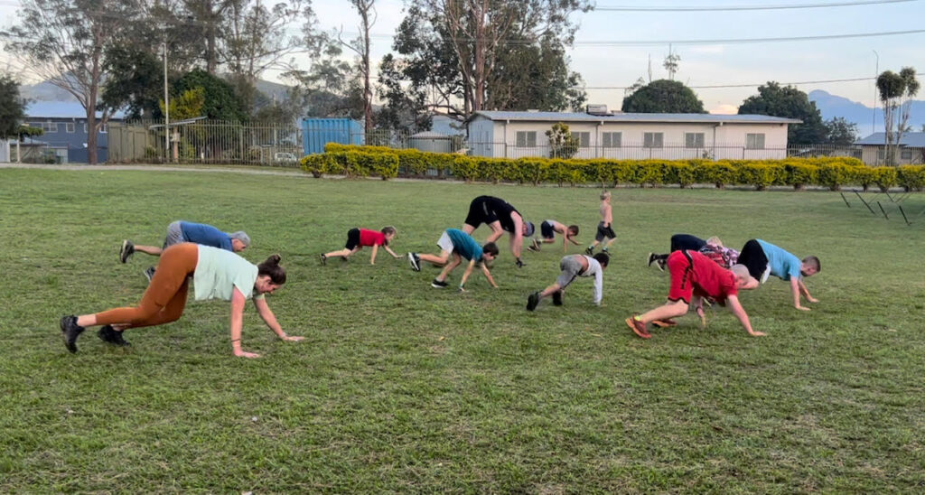 F3 PNG’s one and only and still unofficial AO “Ground Zero” is rapidly accumulating FNG’s of the 2.0 variety. Unlike other 3rd world sweatshops utilizing child manual labor, this one is voluntary and free and ends with a COT. A few adults corralled the gaggle of a 9 umpa lumpas into completing a variety of warm-up exercises, running down and up the gravel hill with various movements, plenty of mary, running around the nursing college, carousel plank walking, a mini-Dora on the field, a solid dose of wall-work, and variable chain reps. We welcomed an Australian friend nicknamed “Kanga”, a shirtless little brother of Mojang nicknamed “Sixpack”, and the Stewardson girls nicknamed “Narwhal” and “Athena”. A great time was had by all and we closed with a solid word of prayer for the mission work ahead of us for the day. Interesting to see how this thing is growing, and always happy for the company – no matter who it is. 🙂 Yours in the Field, DTH