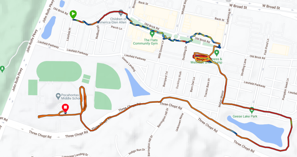 Ladder up the parking deck with 10 merkins each landing. 1.5 mi at this point. Concerned about timing and distance completed, s0tarted back. 5 min of Mary to wrap it up. We would have had time to ladder down the parking deck – next time.