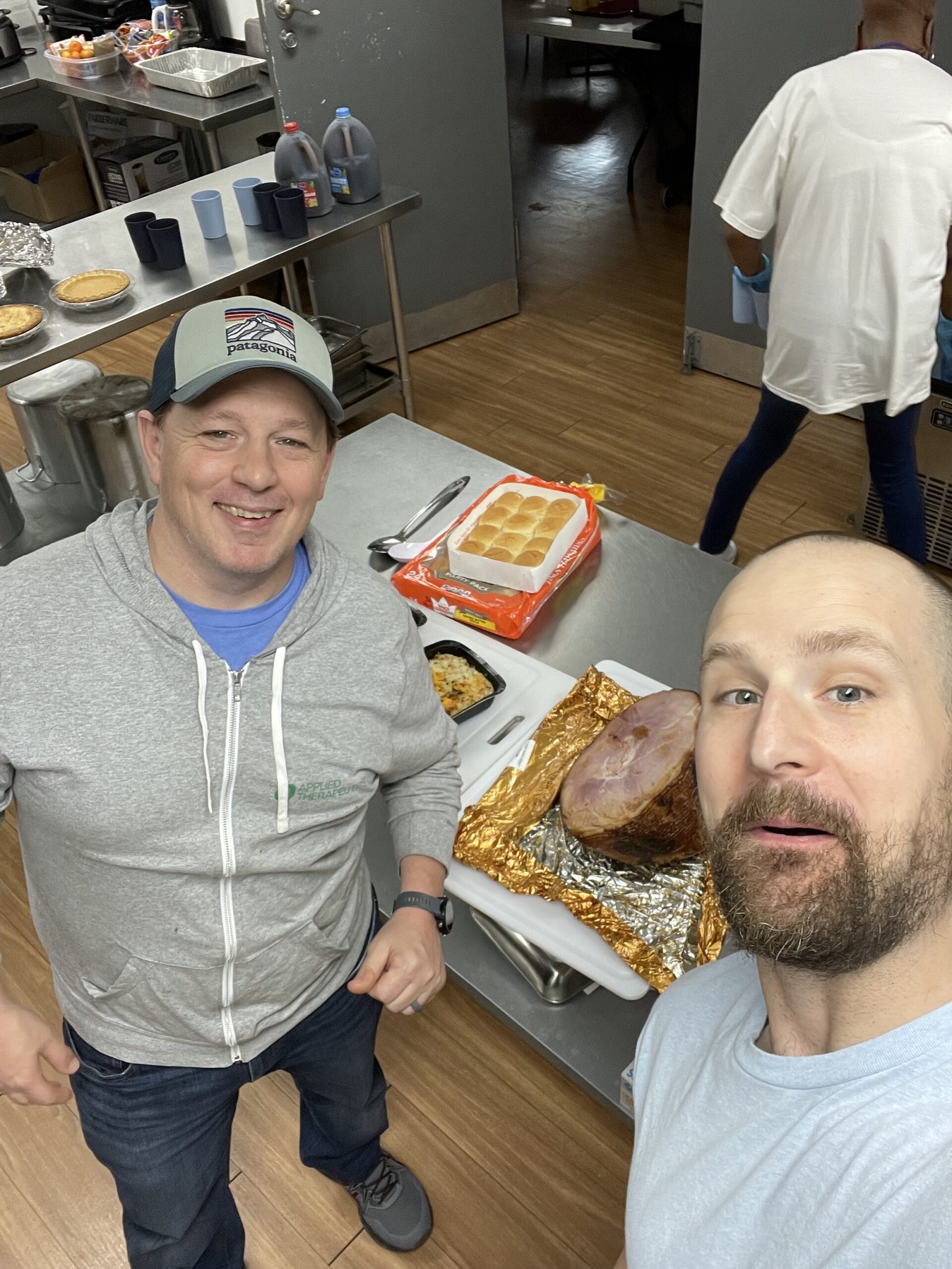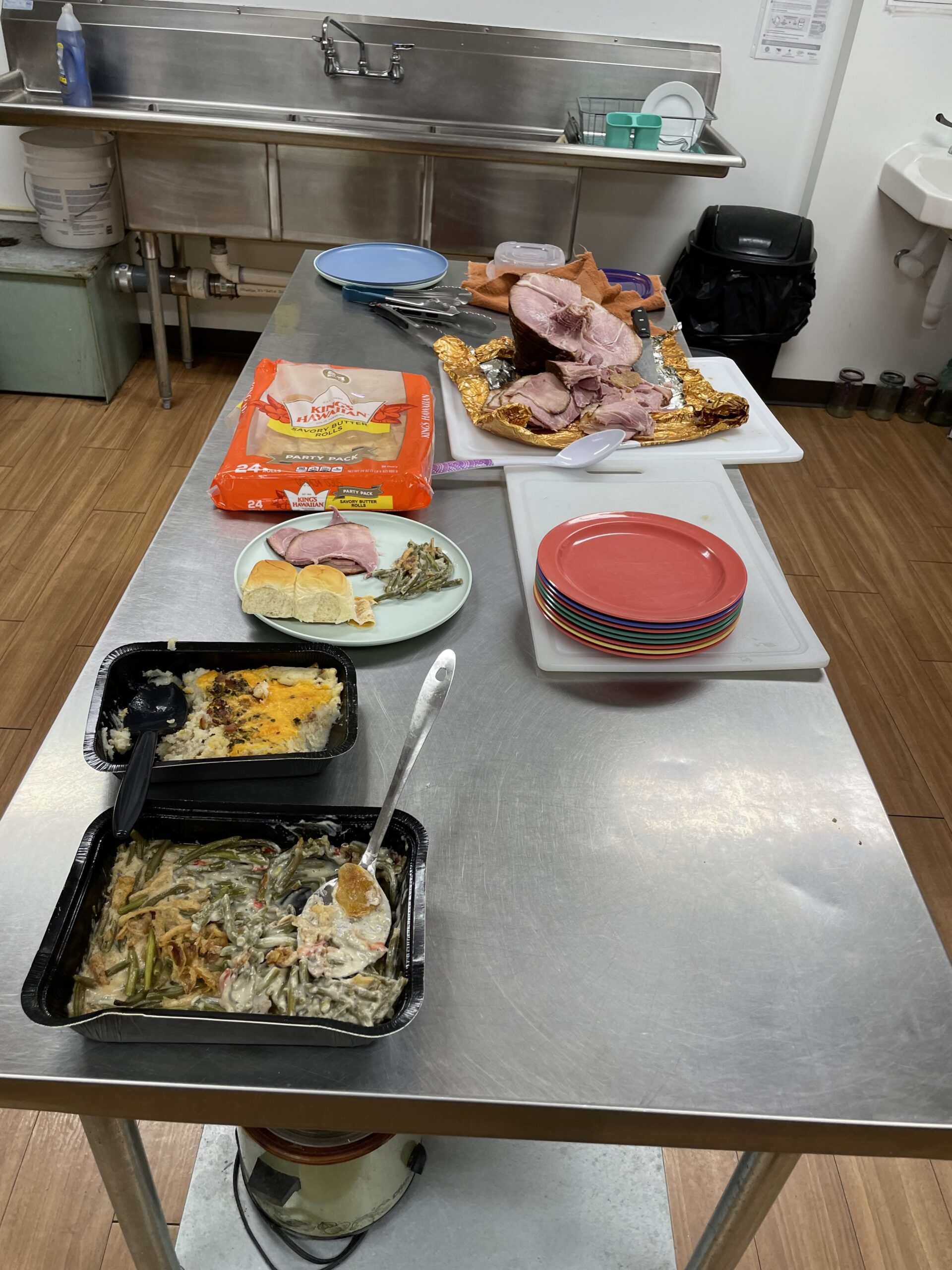 Armed with a Honey Baked Ham, courtesy of Boberry, we served not only love by a feast, complemented by loaded baked potatoes, green bean casserole, and the fluffiest Hawaiian rolls this side of paradise. As we laid out the feast, the room filled with an aroma so enticing that it could make a grown man weep with joy.