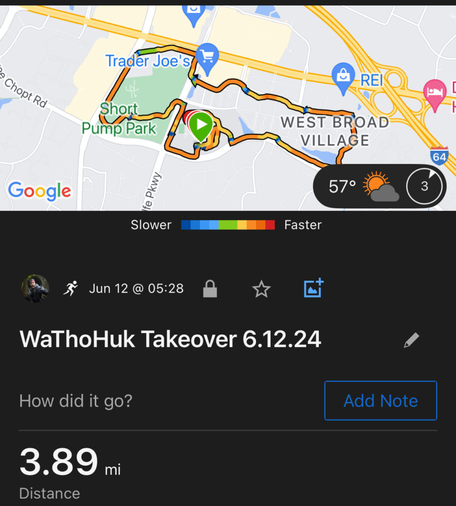 Seven HIM’s converged at WaThoHuk including a couple SOJ takeover BFF’s. Pigskin split off do 10,000 merkins around the school while the rest followed DTH giving House Party a tour of the area. After a brief warmerama we took a broad loop running around the park, west broad village, and middle school, stopping every 100 yards or so for some variable OYO reps. House Party commented toward the end he must have misheard about all the running, but he hang tough and saw it through. Total distance was 3.89 miles. All PAX were sufficiently satisfied. Great to meet and get to know Gaudi! See ya’ll again reeeeaaaaal soon. ~DTH