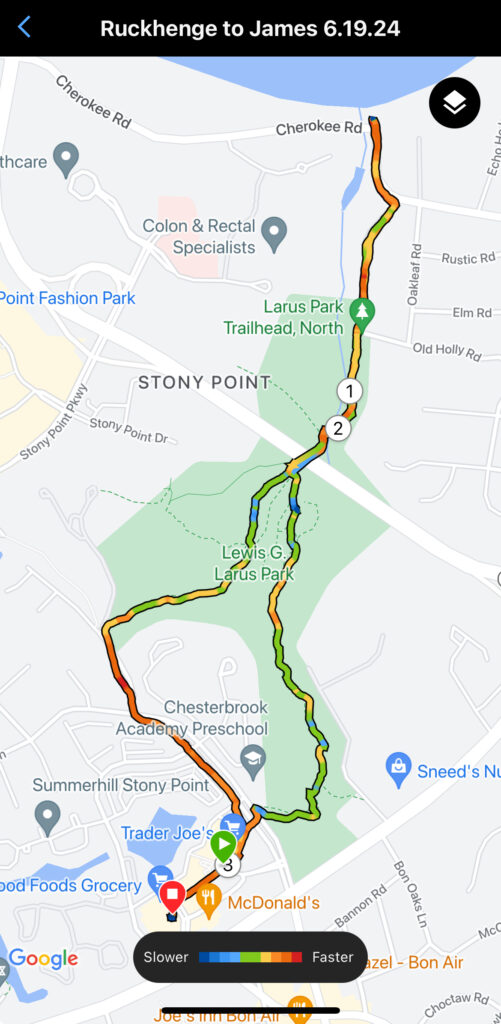 4 SOJ mountain men set off toward the river with the goal of providing a true Deliverance experience to our First Watch paddlers. Fantastic conversation abounded on the hilly terrain rucking through Laurus Park and down to the James via Cherokee, and indeed paddlers were spied from afar – but sadly too far away to note whether or not any of them had a pretty mouth… Having briefly enjoyed the river sunrise, the four-PAX complete the 3.46 mile journey BTTF and COT included reading Mr Roger’s Juneteenth post to commemorate the holiday and reflect on the meaning of American freedom. Coffeerama sitting outside Einstein’s was divine. SYITG, DTH