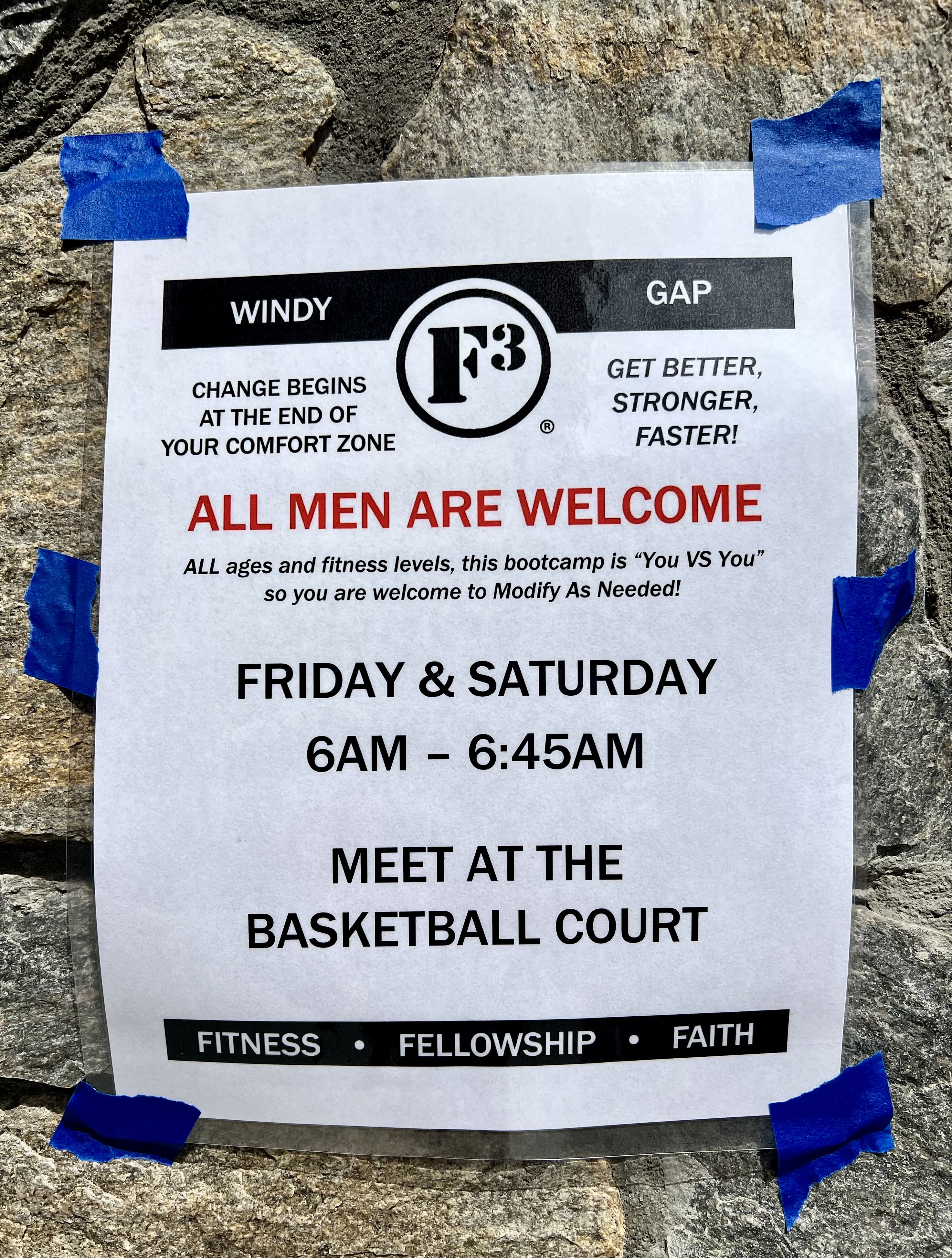 NMS: Wonderful weather for our second mountain beatdown, and great to have another big group at the Windy Gap men’s retreat. Plenty of turnover between yesterday and today as most men chose only one of the two days to attend F3. But we still had three FNG’s to welcome, and all the PAX embraced the opportunity to lead some reps in cadence and did a GREAT job of it. YHC was hoping another HIM would accept yesterday’s invite for someone else to lead today’s beatdown, but since no takers YHC found another way to share leadership. God is moving here on the mountain top, as always best appreciated as it appears THROUGH the brothers next to you. I’m reveling in deep thanksgiving for the opportunity to be here. Yours AYE! ~DTH