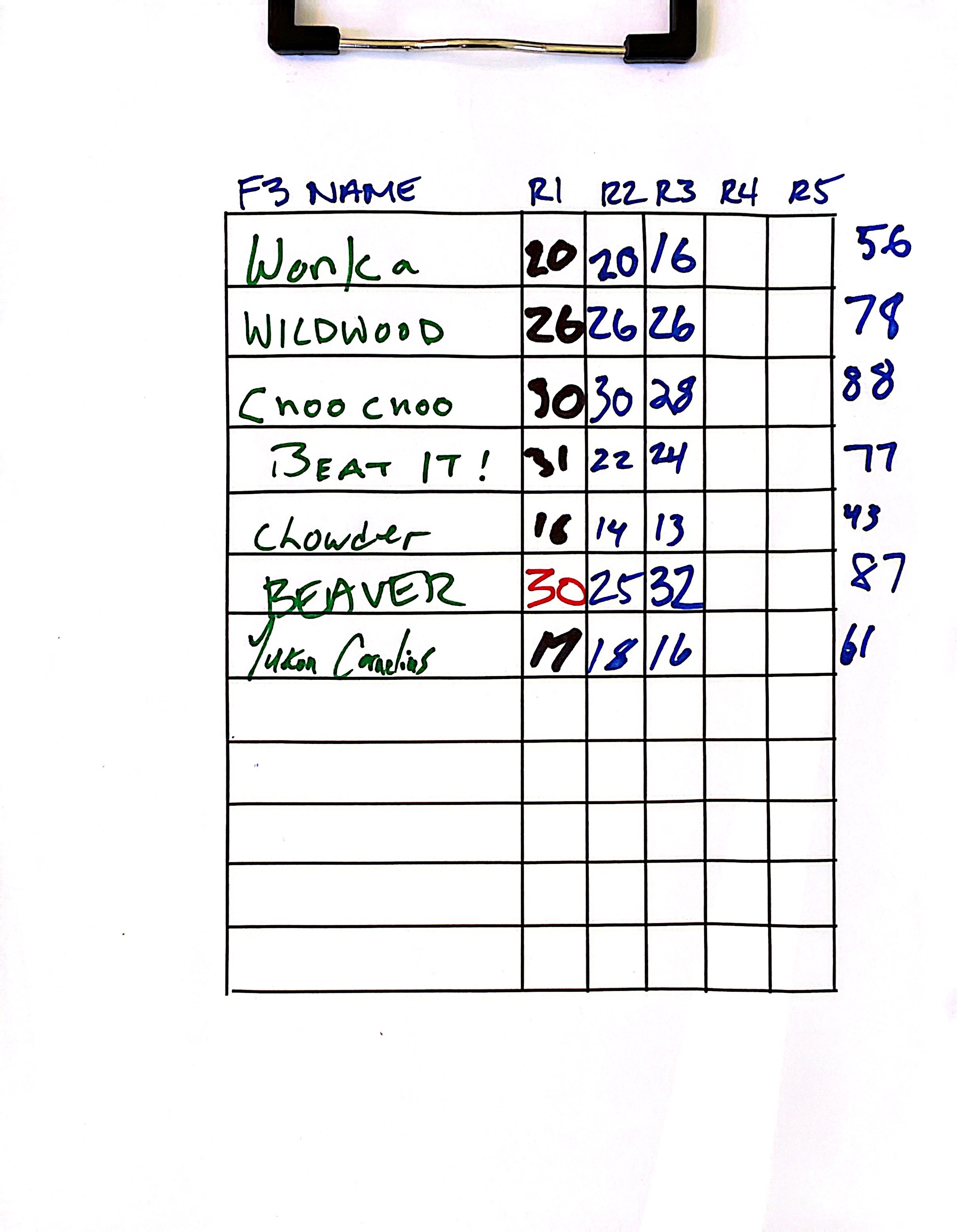The Beaver Birthday Beatdown did not disappoint!!!  Critics rave: “worth the gas to come out!”  YHC was just finishing setting up the circus tent for a sum of 7 HIMs to take advantage of this lovely morning beatdown with lots of toys!