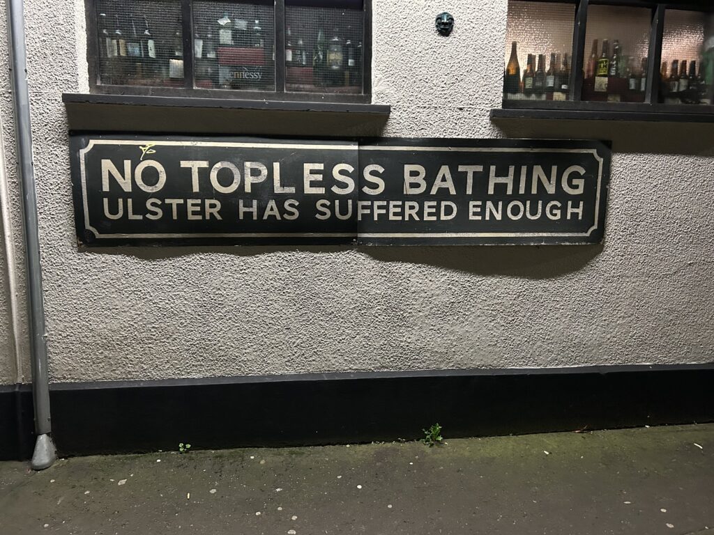 It put me in mind of the sign on the side of the Sunflower Public House in Belfast that gave me a laugh during my recent visit: