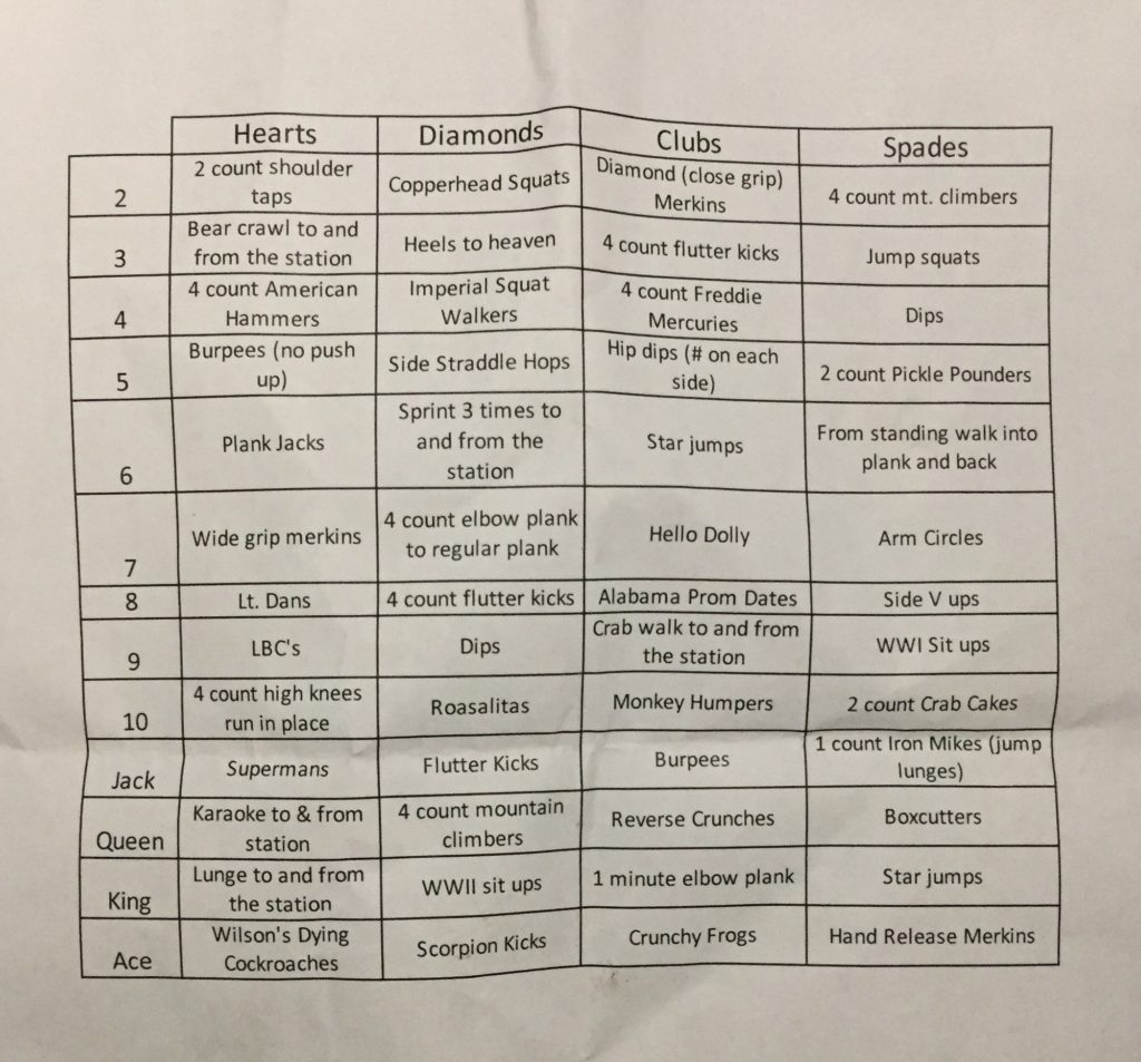 COP – 20 SSH, 10 DQ, 10 Crabcakes, 10 Reverse Crabcakes*, 10 Merkins. Mosey to the back of the truck to grab coupons; Ronnie and GP got the special ones. Mosey to the back bus loop.