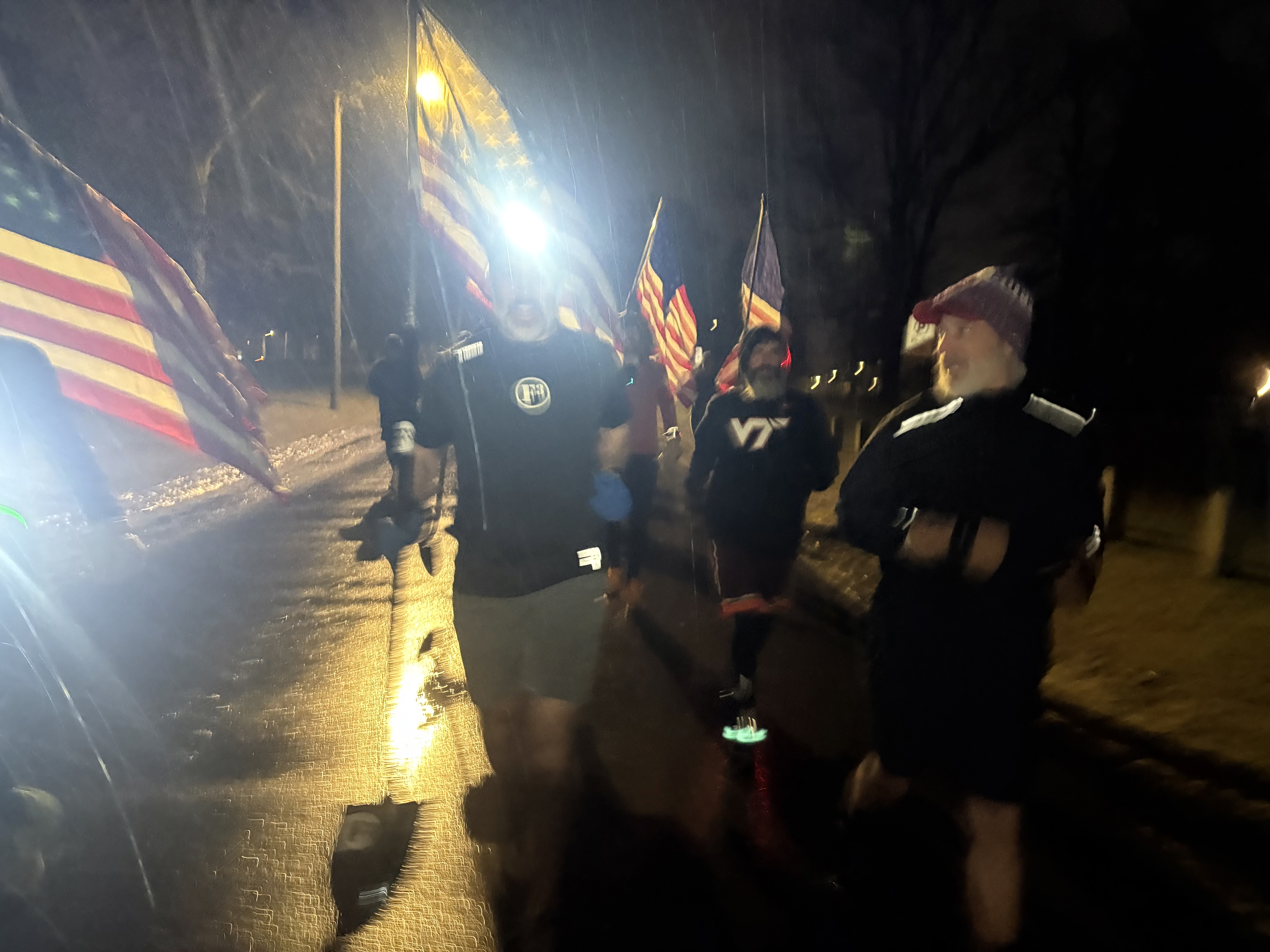 Grabbed the flags, ran to Punisher in freezing rain. Runners arrived around 7 a.m.  Had a few snacks and sips of Gatorade or Water. Ready for whatever NTB had in store.