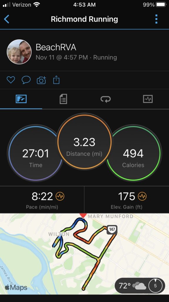 Hot days are coming to RVA. 85 today at the start. A whole new environment to adapt to. Good to run in different condition. Got a good regular group of folks coming out on Wednesday’s. Come on out and join us.