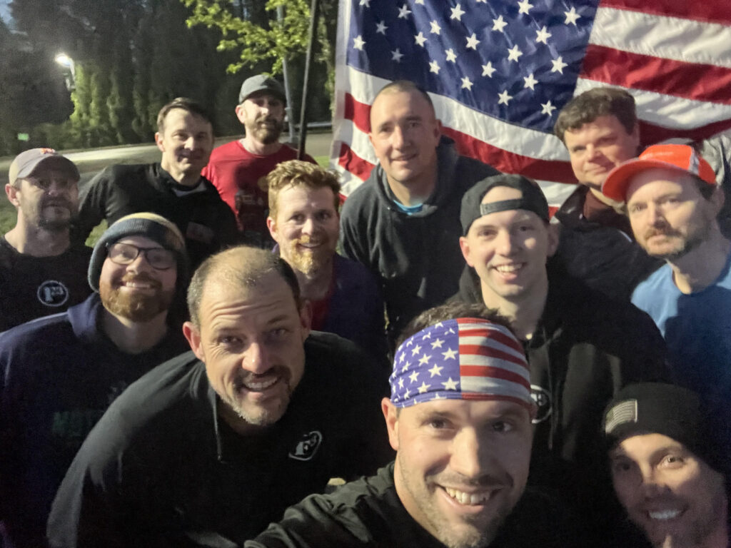 Mosey down to the lower circle for triple check. Timer runs the loop, Australian mountain climbers, Hand Release Merkins. Continue on towards the amphitheater. Stopping on the hill along the way for some Clockwork Merkins & Clockwork WWII’s (revised to LBC’s if needed). Those sucked.